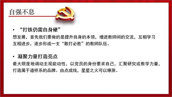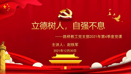 2021年12月30日下午,路桥教工党支部在土木建筑学院路桥系办公室举办了“立德树人,自强不息”为主题的支部书记讲党课活动。会议由支部书记赵铁军主持,路桥系全体党员参加。